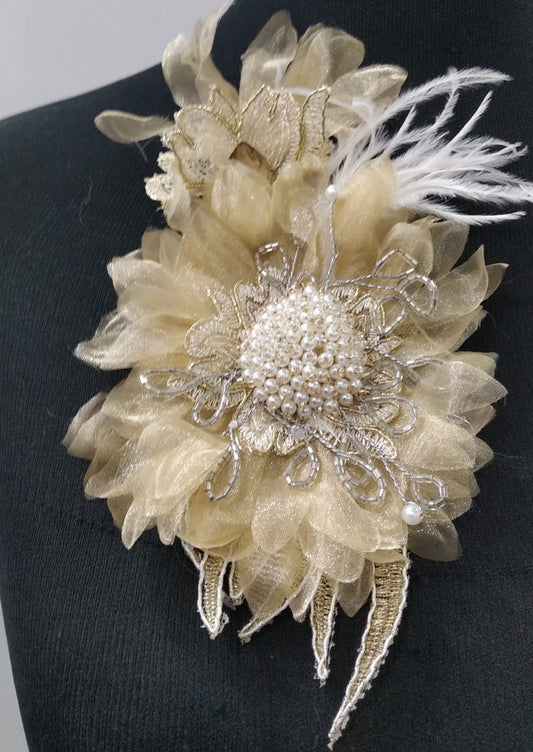 Broche flor con plumas