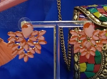¡Agrega lujo y glamour a todo tu look con estos fabulosos pendientes de cristal color salmón!